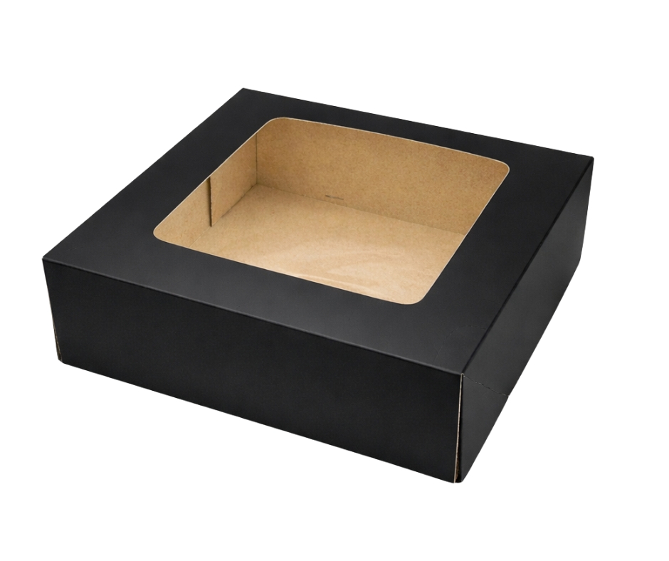Las cajas negras e interior kraf con ventana de 20x20x7,5 cm y apertura frontal son una opción elegante y versátil para presentar y destacar tus productos.