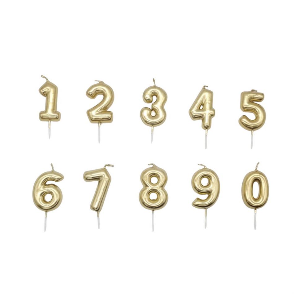 VELA DE NUMERO ORO MEDIDAS: 5 CM GROSOR: 1CM MATERIAL :PARAFINA REF.BC44 VELAS PARA TARTAS